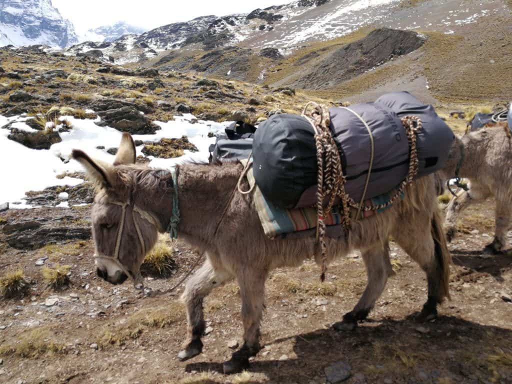 Dopo le foto di rito iniziamo la discesa, anche in questo caso a malincuore. Oramai è tardi, sono le 8 e di neve c’è n’è veramente troppa. Alle 11, tornati al campo base mi stendo subito nel sacco a pelo, gli altri mangiano ed io li raggiungo per la frutta. La zona del lago Chiar Khota è piena di animali: lama, alpaca, viscacha (un roditore simile ad un coniglio con la coda dello scoiattolo) alcuni rapaci e incredibilmente tanti gabbiani! Prepariamo le sacche e ripartiamo insieme ai muli che ci aiutano nel trekking di un’ora e mezza che ci separa dall’appartamento col pulmino. La ragazza che guida da dietro i 4 muli porta dietro di sé il figlio di un anno, avvolto nel classico telo andino dai mille colori. È impressionante come mantenga un passo veloce e sicuro sulla neve e sui sassi lisci e scivolosi, con scarpe basse a suola liscia e dita scoperte.