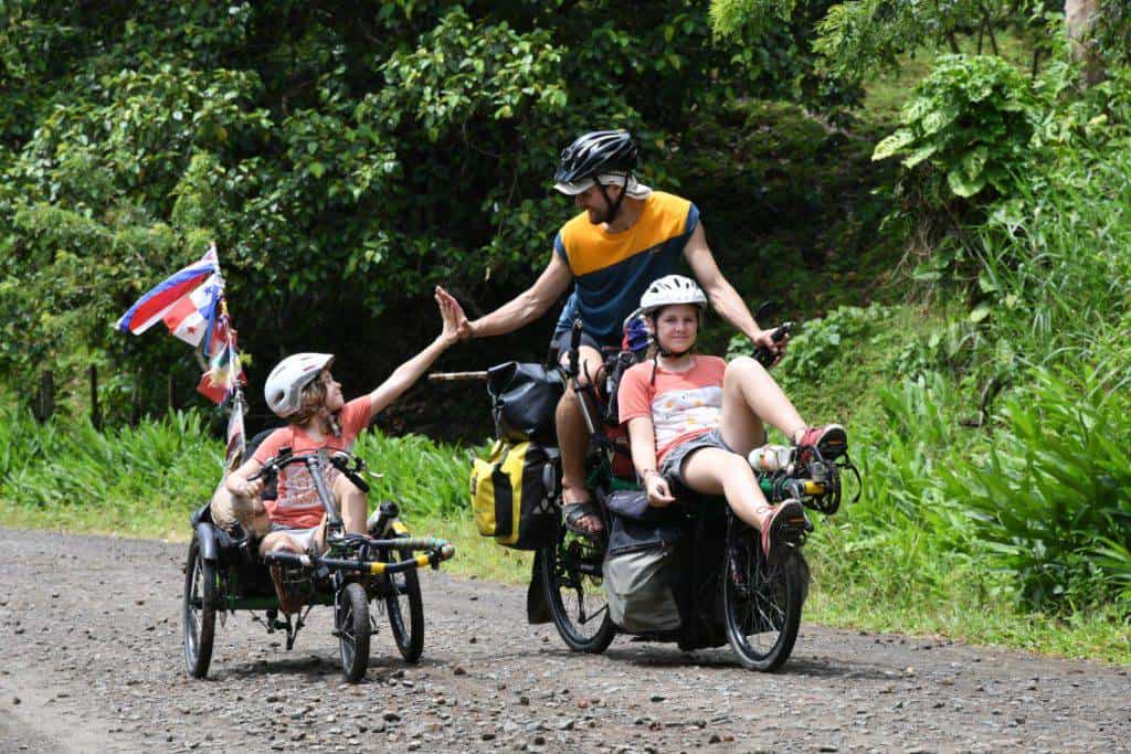Attualmente la “Happy Family” si trova in Costa Rica: poiché i collegamenti stradali tra Colombia e Panama si interrompono nella foresta del Darién, tratto controllato dal narcotraffico, nel giugno scorso la famiglia ha preso la decisione più sicura, economica e veloce di prendere un volo fino a Panama City da Cartagena e da lì proseguire in bici. Li abbiamo raggiunti via telefono e email proprio in Costa Rica e ci siamo fatti raccontare qualcosa del loro viaggio.