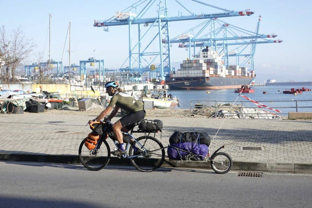 La partenza da Palermo è stata subito in salita tra le percentuali impietose della strada e i problemi al carrellino, risolti abbastanza velocemente, che la bici di Cala trainava per portare l’attrezzatura sportiva.