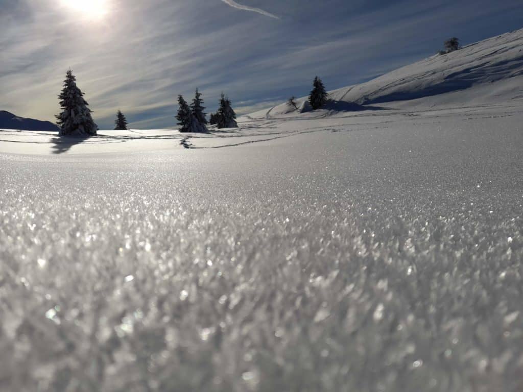 Adesso parliamo di neve, e qui c’è davvero tanto da dire. La neve è tanto bella quanto spietata e imprevedibile, cambia costantemente e non è mai completamente stabile. Per poter giudicare correttamente le condizioni del manto nevoso ci vogliono anni di esperienza. Con le sbagliate condizioni e il minimo cambiamento (es. uno sciatore o un escursionista che aggiunge peso in cima al manto nevoso, o un cambiamento repentino di temperatura) è davvero facile provocare una valanga, e con le valanghe non si scherza. Premetto che questo è un argomento vastissimo che richiede anni di studio e di esperienza sul campo. Qui voglio solo accennare alcuni concetti da tenere in considerazione, che però andranno inevitabilmente approfonditi.