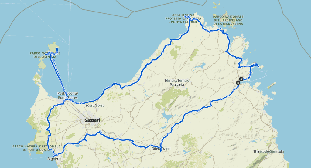 Dapprima pedaleremo lungo la costa nord per arrivare fino a Porto Torres, dove ci fermeremo due notti per avere un giorno da dedicare interamente all’iconica isola dell’Asinara. Il nostro itinerario proseguirà verso sud per raggiungere la città di Alghero, da dove poi taglieremo nell’entroterra per tornare a Olbia.