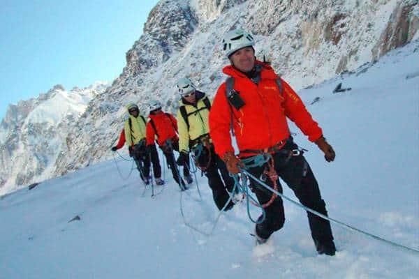 La giornata successiva è stata interamente dedicata all'attività su ghiacciaio. Numerose le cordate che, scese dalla stazione a monte del trenino di Montenvers fin sul ghiacciaio, si sono immerse nella Mer de Glace per sperimentare le performance dei capi Arc'Teryx in GORE-TEX® Pro con i quali l'intero gruppo è stato equipaggiato in assoluta anteprima. Trekking su ghiaccio e ice climbing si sono protratti fino al pomeriggio, in una cornice maestosa e spettacolare, contornata dai Drus e dalle Grandes Jorasses, tra crepacci di ghiaccio grigio-verde, sotto il controllo delle Guide del Monte Bianco. I risultati del test saranno resi noti ai primi di febbraio, dopo la presentazione ufficiale al pubblico, all'Ispo di Monaco.