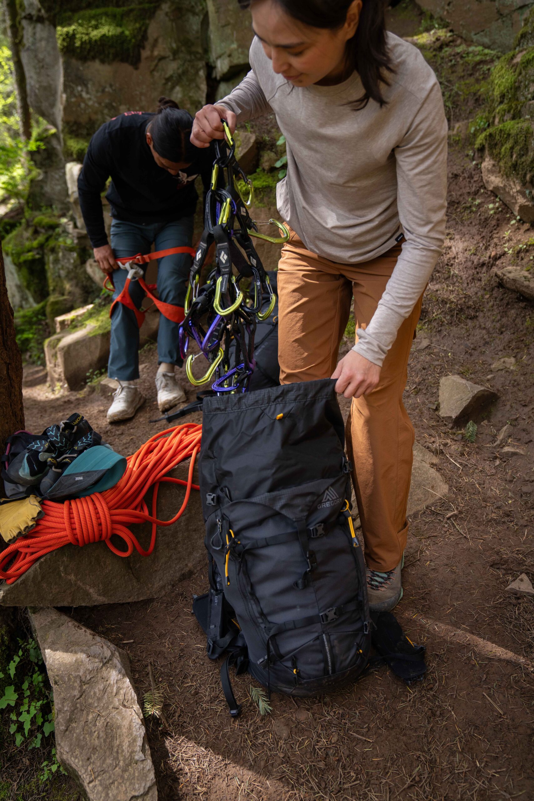 La collezione Alpinisto di Gregory ha tre misure – 20, 30 e 50 litri – condividono la stessa piattaforma, ma differiscono per carico massimo, opzioni di accesso e caratteristiche. I tessuti riciclati e privi di PFAS, lo schienale traspirante AirCushion e la cintura ventrale regolabile in base alla taglia sono ideali per movimenti dinamici e comfort traspirante dal primo avvicinamento fino all’ultima calata.