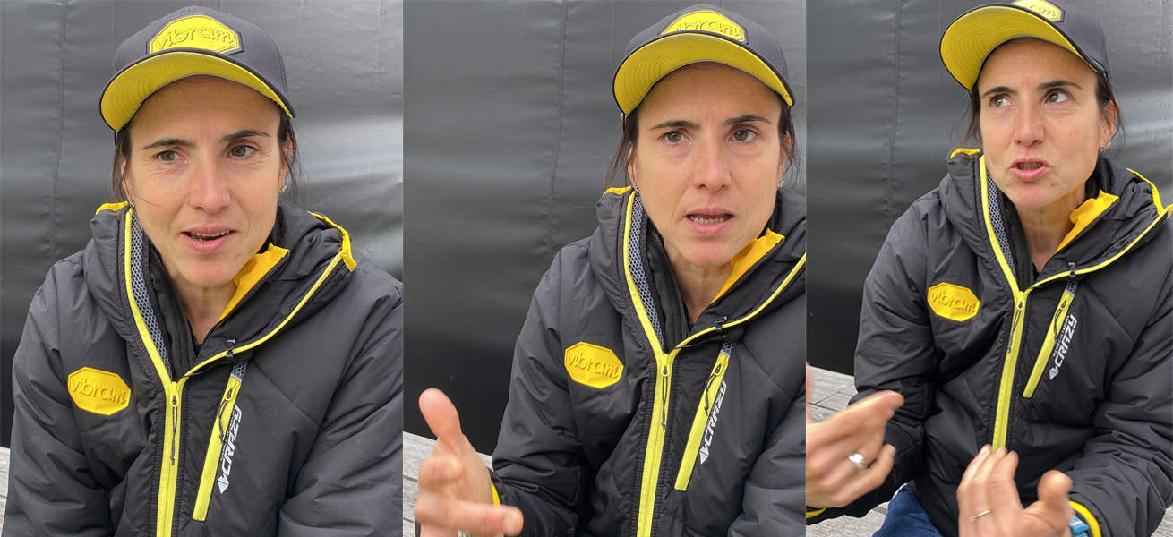 Tre espressioni di Maite Maiora durante l’intervista a Chamonix.