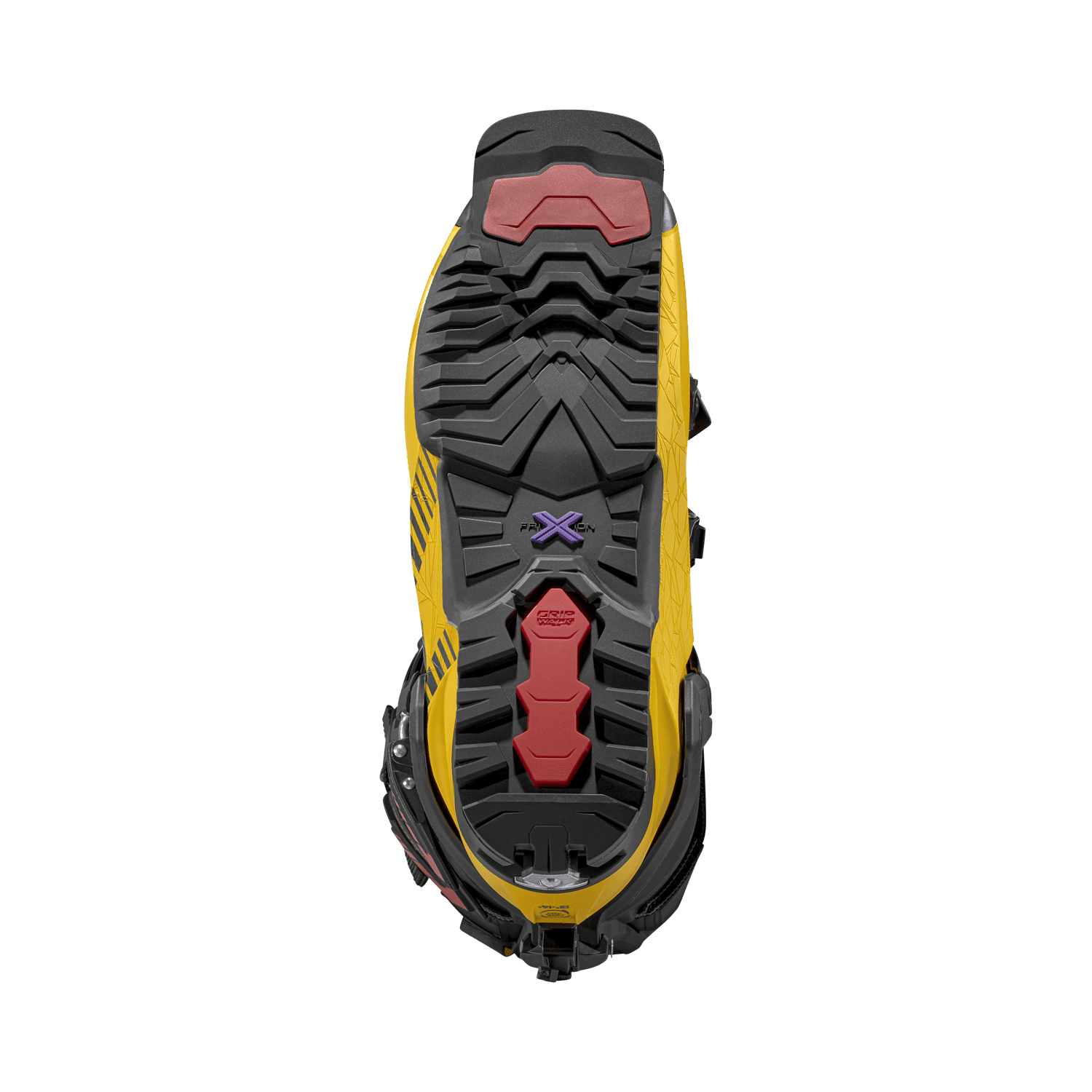 La suola Frixion® Purple assicura un’aderenza eccellente e massima compatibilità con attacchi da scialpinismo e da sci alpino, mentre gli S4 Inserts™ facilitano l’inserimento dei pin per un passaggio rapido e intuitivo tra salita e discesa.