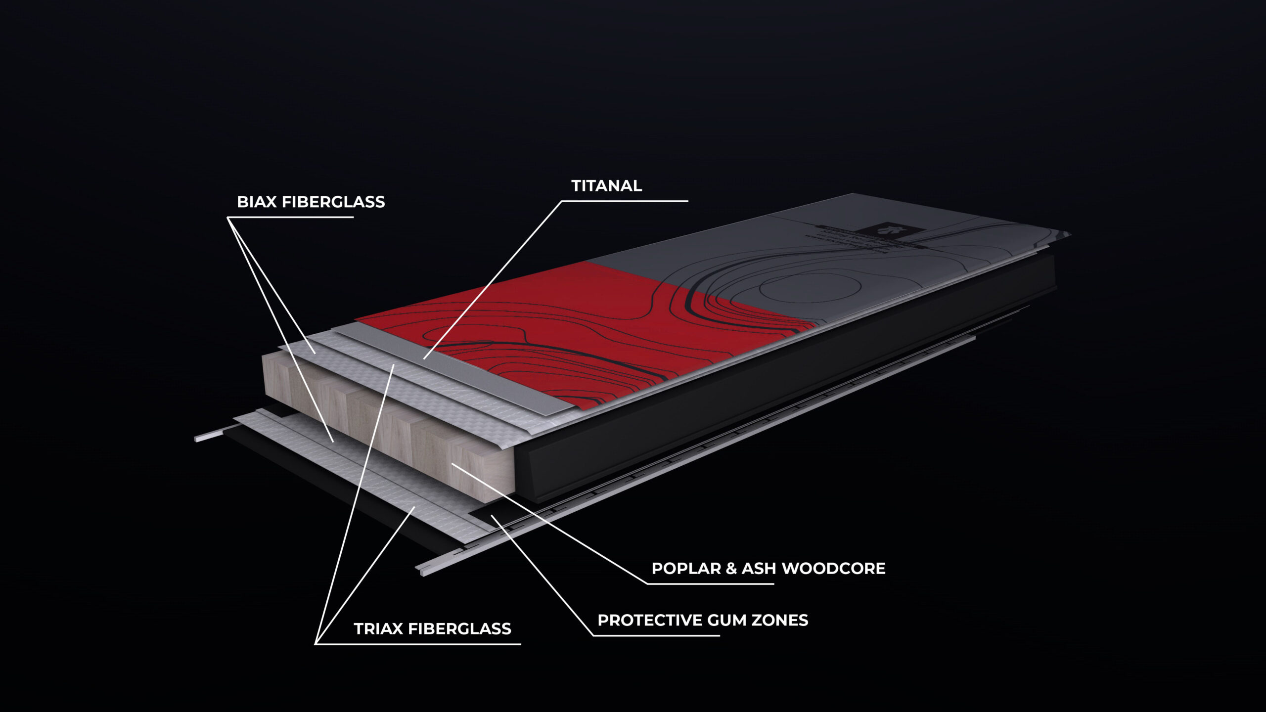 Il profilo double rocker / camber / rocker lavora in doppia direzione: ingresso curva facile e intuitivo, surf naturale appena la neve si fa profonda. È lo shape ideale per un freeride ad alta intensità, drop decisi e tracciature ampie in neve fresca. La costruzione semi-cap e il rinforzo in titanal garantiscono potenza, trasmissione immediata e sensibilità sotto i piedi senza compromessi.