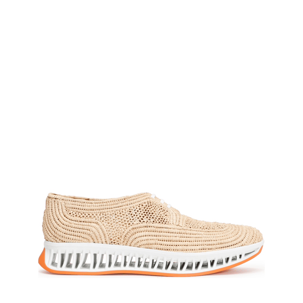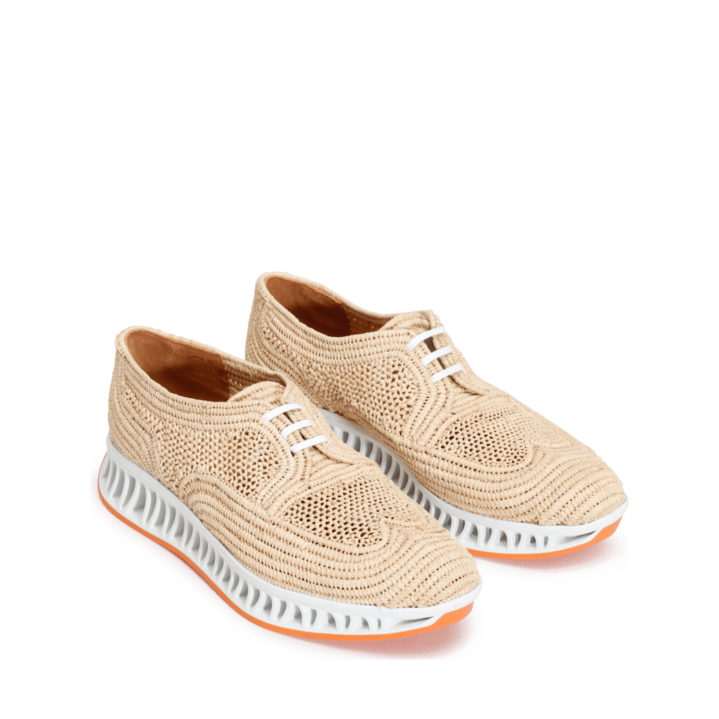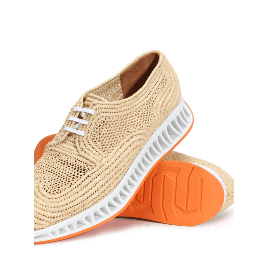 La collezione co-progettata fra Michelin e Clergerie comprende derby in pelle di agnello e in rafia naturale tessuta a mano.