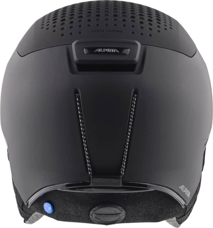 La parte posteriore dell'Alpina Gems è liscia e al centro è presente la chiusura per la maschera da sci. Questo sistema di inserimento è di un materiale elastico ed è formato da due cordini che risultano essere molto comodi quando si vuole utilizzare la maschera.