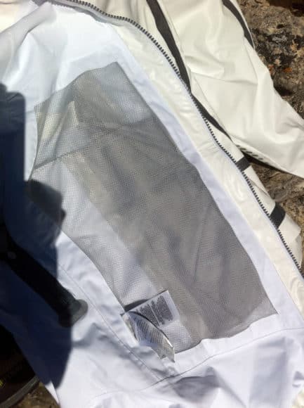| Tasche | 2 al petto, 2 grandi alla vita, con zip a maglia fine e protezione atmosferica |