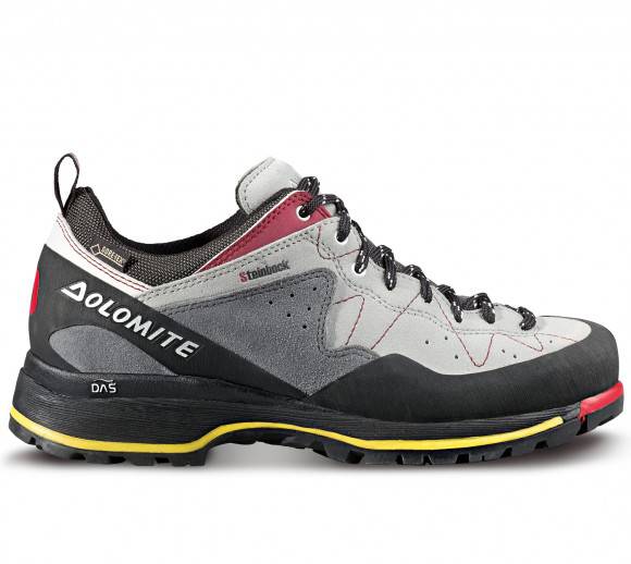Dolomite Steinbock GTX, una scarpa leggera di soli 470 grammi di peso, con una combinazione performante di grip, assorbimento degli impatti e massima tenuta e precisione su tutte le superfici, grazie anche alla "climbing zone" intercambiabile. Le caratteristiche strutturali di questa scarpa la rendono ideale per il fast climbing dalla roccia ai terreni meno impegnativi.