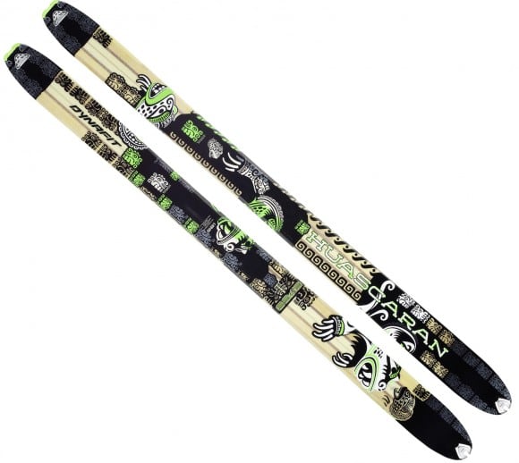 La grafica del nuovo sci Huascaran Dynafit è molto bella e intrigante. Viene subito voglia di comprarlo anche solo come oggetto di arredamento. Le misure della soletta sono extralarge, 112 mm sotto al piede, la punta e la coda sono intorno a 130 mm. Questo sci presenta un triplo raggio da testare in pista per avvalorarne le differenze. Maneggiandolo si scopre subito una certa pastosità: rocker in punta e in coda e peso modesto (con attacchini Dynafit) sono le particolarità che invogliano a provare questo sci. La piastra in titanal rende lo sci abbastanza rigido nella parte centrale e comunque sufficientemente morbido in punta. Il modello a disposizione è lungo 177cm con attacchino Dynafit, siamo curiosi di provarlo in diverse condizioni, dato che le indicazioni della casa lo propongono sia per lo scialpinismo che per il freeride su powder, crosta e ghiaccio.
