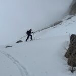 trasformata: compatta e dura nelle prime ore della mattina, più cedevole e umida nel corso della giornata. Durante il terzo giorno, una nevicata leggera ha depositato circa 10 centimetri di neve fresca, offrendo l’occasione di osservare il comportamento dell’attrezzatura anche su manto nevoso recente.
