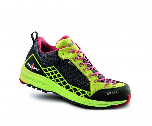 La calzatura Kayland Gravity GTX donna si propone come un modello tal taglio basso adatto per l' avvicinamento tecnico, le vie ferrate e i sentieri misti. Si presenta visivamente semplice, pulita e grintosa con un interessante accostamento di colori, materiali e tecnologie. Risulta leggera ma al contempo solida e strutturata. La forma sembra declinata perfettamente per il piede femminile, più larga in punta e più stretta su tallone e caviglia. L'allacciatura serra la calzata nella zona anteriore per consentire maggior grip e tenuta e inoltre l'asimmetria consente di personalizzarne la chiusura e permette al piede una flessione naturale. La suola bimescola aumenta le prestazioni e la rende dunque ottimale per adattarsi ad ogni tipo di terreno e inoltre la struttura asimmetrica con ammortizzazione permette una rullata assistita. Si notano sulla suola tappi rettangolari per una migliore aderenza e circolari per aumentarne la stabilità. La fodera interna in Gore-Tex la rende una scarpa resistente all'acqua e traspirante cosi da poter assicurare protezione e comfort con temperature moderate e anche più rigide. La calzata facilitata dall'anello posteriore. Il piede sta comodo e caldo, si percepisce immediatamente la solidità della scarpa, ma al contempo la si percepisce sensibile al passo e al movimento del piede.