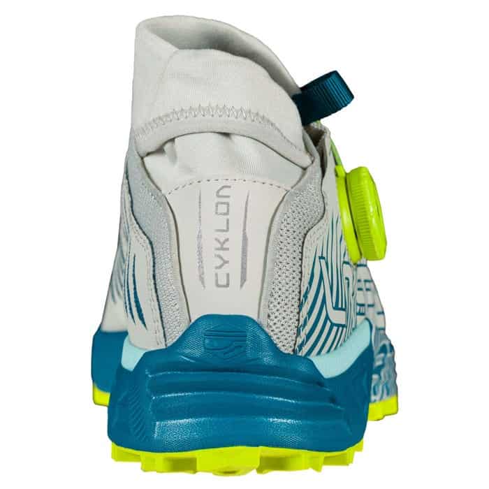 La Sportiva Cyklon è la calzatura performance ideale per skyraces e corse off-road su terreni tecnici a media distanza. Frutto del lavoro di ricerca e sviluppo tra La Sportiva e BOA®, è un prodotto che garantisce stabilità, precisione e una perfetta avvolgenza grazie al nuovo sistema di chiusura Dynamic Cage™ con BOA® Fit System integrato che lavora in sinergia con 3 diversi elementi della tomaia per la perfetta fasciatura e stabilità del piede per una corsa in discesa sicura e precisa.