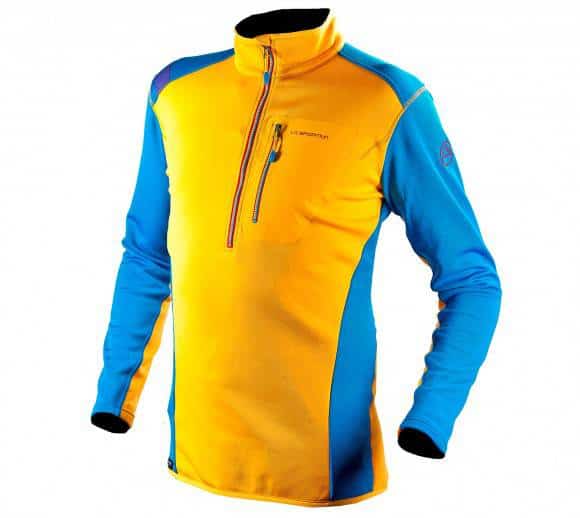 Bello e accattivante, con i suoi colori sgargianti, l'Icon Pullover de La Sportiva è un secondo strato totalmente in Polartec. Questo materiale dovrebbe conferire un ottimo potere calorifico, mantenendo però una buona traspirabilità del capo. Per indossare questo pullover dovremmo essere facilitati dalla presenza di una zip frontale lunga circa 20-25 cm, che permette la sua apertura fino a quasi metà petto. Superiormente quest'ultima continua sul colletto, che copre solo la parte inferiore del collo. Alla sua sinistra troviamo una breve zip che chiude una tasca pettorale. Questo capo, dalla vestibilità molto aderente, presenta tagli e inserti obliqui dalla scapola fino al fianco, così da rendere meno limitante il movimento durante l'attività sportiva. Alla base del pullover troviamo un risvolto senza la presenza di elastico per la regolazione della fasciabilità, già insita nella forma del capo. Stessa fasciabilità è presente a livello delle estremità delle maniche che avvolgono comodamente i polsi.