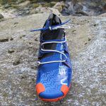 La calzatura Unika di La Sportiva è il nuovo modello da trail running proposto dall'azienda della Val di Fiemme. A prima vista sembrerebbe un modello classico, in realtà ha una costruzione particolare, con suola più alta sul tallone e più bassa in punta. La struttura della tomaia è a calza, con inserti laterali di rinforzo, linguetta e tallone più imbottiti per dare una maggiore struttura alla calzatura. Le stringhe sono fini e piuttosto rigide, vanno a migliorare il fit della stessa. Il tallone presenta un'asola per permettere di tirare la scarpa quando la si indossa. Lateralmente su entrambi i lati, due fasce di rinforzo aiutano la scarpa a contenere meglio il piede dando rigidità. La suola ha un disegno mediamente tassellato e ci sembra più bassa del solito, si tratta di una nuova mescola di La Sportiva, FriXion Bianca, molto aderente in peso ridotto. Proviamo ad indossarla e una volta allentati i lacci il piede scivola al suo interno, dobbiamo fare un pò di forza, servendoci dell'asola posteriore. Una volta inserito, il piede prende il suo spazio all'interno della calzatura, molto avvolgente, le stringhe sembrano quasi un plus per la parte del dorso del piede. Oltre al comfort immediato della calzata, ci colpisce la suola, che rimane più alta sul tallone e più bassa nell'avanpiede. La rullata è naturale.