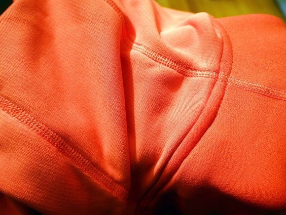 Interessante l'alleggerimento del tessuto alle anche, lateralmente al busto e sotto ascella/braccio, per diminuire gli ingombri nei punti chiave.