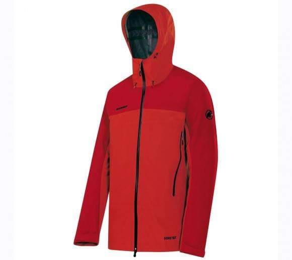 Mammut Convey. Leggera e poco ingombrante questa giacca in GORE-TEX® 2.5 strati (28.000 mm colonne d’acqua) è perfetta per fare escursioni e al 100% protettiva contro le intemperie. Ha ampie tasche laterali e un cappuccio regolabile in tre punti e può essere racchiuso utilizzando un piccolo fissaggio. Zip principale bidirezionale impermeabile, due tasche frontali termonastrate, zip sotto le ascelle per la ventilazione. Maniche preformate con velcro sui polsi, protezione del mento e vestibilità regolare.