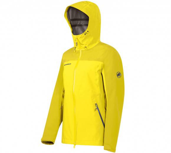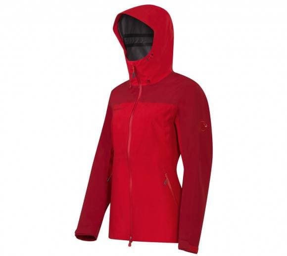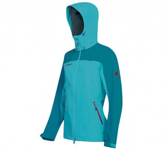 Mammut Kira colpisce per i colori pastello, netti e decisamente moderni. Un bel salto per il marchio Mammut, rimasto fedele nel tempo a una scala cromatica decisamente meno accattivante. La qualità del materiale, garantito da GORE-TEX®, non si discute e la combinazione del tessuto a 2,5 strati (addome, zona lombare, sotto braccia e cappuccio) con uno a 3 strati (sovraspalle, braccia, dorso), comunica immediatamente l'alto valore tecnico e prestativo del capo. La lunga zip anteriore dispone di una patella sottostante, antivento, ed è protetta da una gommatura superiore; tutte le altre cerniere, tasche laterali e ascellari, con dentatura più fine, sono anch'esse impermeabilizzate. Non sono presenti tasche interne, ne' napoleonica. La coulisse in vita si regola facilmente con tiranti elastici e sistemi di bloccaggio a pressione. L'indossaggio è rapido, e la chiusura della cerniera anteriore, scorrevole e precisa, richiede solo un po' di attenzione nel dislocare i cursori esattamente a fondo corsa, per poter inserire efficacemente la guida metallica dell'altro lembo. La giacca risulta subito molto confortevole, seguendo naturalmente i movimenti del busto e delle braccia: il taglio sciancrato è molto gradevole. I polsini richiudibili con lembo in tessuto e velcro, appaiono ben tagliati e risultano pratici da utilizzare. Il cappuccio avvolge bene il capo, lasciando ampio campo visivo, grazie alla efficace regolazione a tre punti, con elastico e bloccaggi a pressione. Si ha la precisa idea di un guscio molto bello e portabile in ogni situazione, ma anche capace di massima protezione dagli agenti atmosferici in alta quota e in situazioni di forte maltempo. (Jessica Tradati)