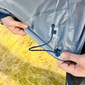 Il fondo regolabile tramite elastico, migliora la vestibilità, ma anche la durabilità del capo, evitando che si sollevi o si danneggi quando viene usato con zaino o imbrago.