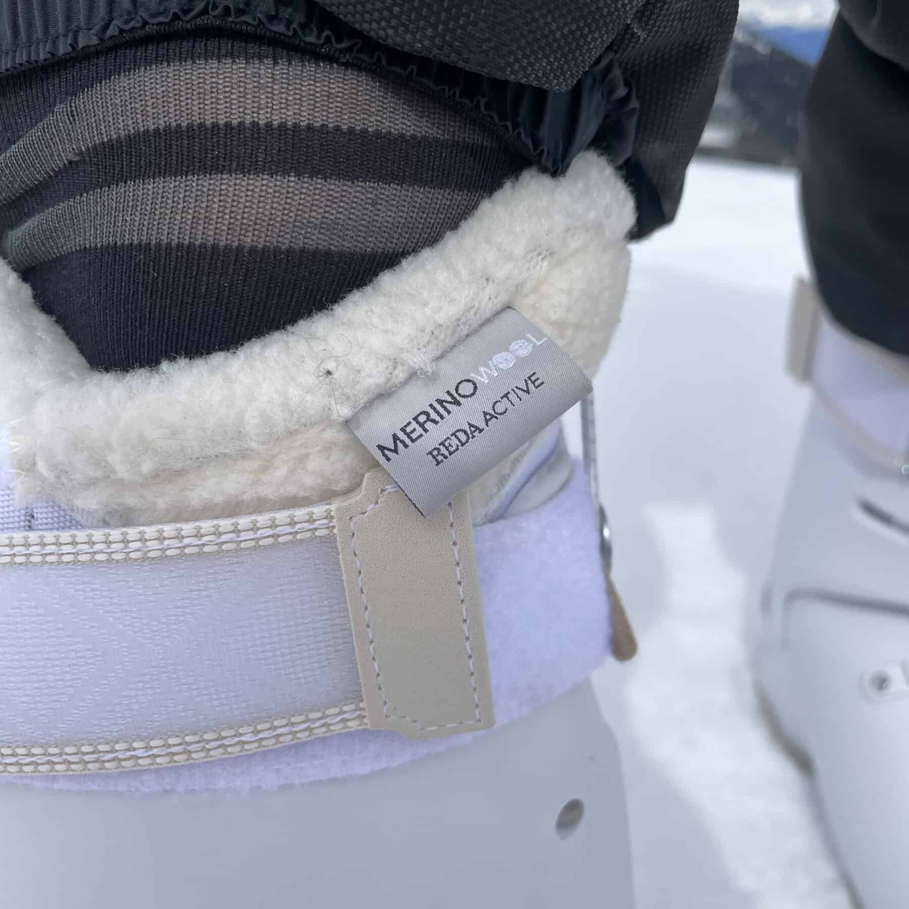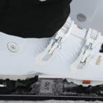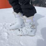 La calzata è sorprendentemente facile: si può infilare il piede anche senza mani, grazie all’ampia apertura del gambetto e al sistema walk-in che rende l’ingresso super intuitivo. Una volta posizionato il piede, bastano due semplici movimenti sulle doppie leve del gambetto per trasformare lo scarpone da “walk mode” a uno scarpone rigido e stabile per la sciata. È un sistema innovativo, pensato per le sciatrici che cercano praticità senza compromettere la performance.