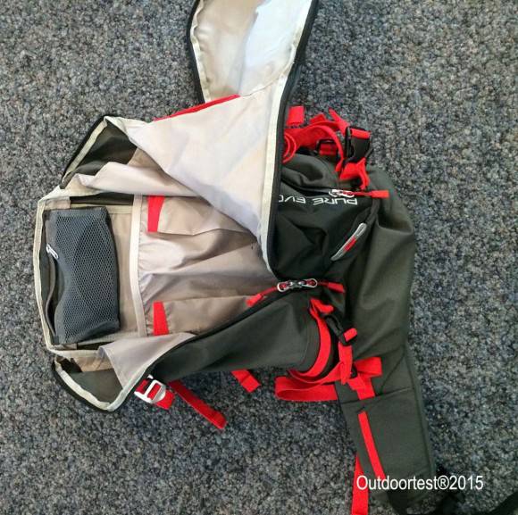 Lo zaino aperto presenta notevoli scomparti di diverse dimensioni, sulla parte superiore un'astuccio in rete di piccole dimensioni con chiusura a zip. Lo zaino risulta molto facile da caricare e da organizzare internamente. Le cinghie di regolazione sono molto funzionali e mantengono lo zaino aderente al corpo garantendo una perfetta distribuzione dei carichi.