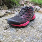 Abbiamo testato la Scarpa Neutron 2 W nel Parco Naturale dell’ Adamello-Brenta, sui sentieri che da Molveno portano al rifugio Croz del’Altissimo, terra battuta e single track perfetti per il nostro scopo. Abbiamo corso/camminato una decina di chilometri, tra sentieri più o meno ripidi e tratti in discesa con meteo variabile, a tratti piovoso. La calzata è piuttosto naturale, la parte anteriore risulta leggermente più ampia e le dita trovano il loro spazio, il tallone è avvolto dalla tomaia che risulta morbida nell’area del tendine d’achille. La Scarpa Neutron 2 W ci ha colpito principalmente per la risposta elastica della parte anteriore, in cui il supporto è stato massimo soprattutto a livello di rimbalzo facilitando la progressione. Nei tratti pianeggianti il piede procede sicuro, sento un buon supporto da parte della scarpa, sebbene i volumi della suola siano contenuti. Abbiamo apprezzato, soprattutto in discesa, la speciale costruzione della punta leggermente più ampia che ha lasciato il giusto spazio alle dita del piede per spingere, e la fascia di rinforzo a proteggerle molto funzionale sia in salita che in discesa. In discesa è risultata mediamente ammortizzata, un po’ sotto le mie aspettative anche se nel complesso non abbiamo avvertito fastidio alle articolazioni. Stabilità è un’altra sensazione che mi accompagna durante il test, sensazione percepita sia in salita che nei tratti in discesa, il piede poggia sicuro all’interno della scarpa senza cedimenti laterali. La suola è in Vibram Megagrip e ci ha lasciato positivamente sorpresi per la tenuta in tutte le situazioni, da terreno scivoloso a rocce bagnate, non c’è stato fondo che non abbia saputo varcare con stabilità e sicurezza. Utilizzata a lungo ha dimostrato di mantenere una buona termicità, il piede ha avuto il giusto riciclo d’aria, anche se non abbiamo avuto modo di provarle con temperature sopra i 20°. Nel complesso una scarpa comoda, stabile e sicura nella sua progressione.