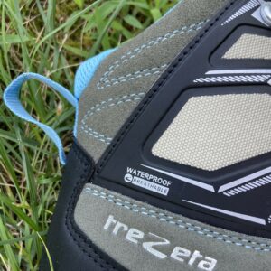 La prima cosa che mi ha colpito quando ho preso in mano lo scarponcino Trezeta Aoraki è stata la leggerezza. Ho subito pensato che le mie gambe a fine giornata avrebbero ringraziato. L'estetica è sobria e le tinte sono delicate, questo conferisce allo scarponcino una semplicità che si adatta con naturalezza a qualsiasi stile. Per il test abbiamo provato la versione color vetiver con dettagli celesti, inclusi i lacci, ma viene realizzata anche una versione con tonalità più scure color grigio con inserti gialli.