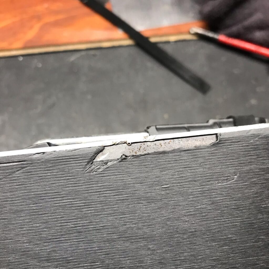 Di fatto è una verifica delle condizioni dello sci in generale. Si individuano le parti danneggiate o usurate e si ripristinano. La maggior parte dei clienti arriva quando lo sci è davvero messo male; buchi nella soletta, lamine arrugginite con angolazioni non ottimali per una sciata in sicurezza, oltre che piacevole.”
