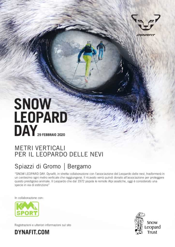 Non capita tutti i giorni di sciare per una buona causa: con lo Snow Leopard Day, DYNAFIT chiama a raccolta gli appassionati di scialpinismo, non importa se professionisti o principianti, per contribuire alla difesa del leopardo delle nevi, animale simbolo del proprio marchio. Un appuntamento di respiro internazionale che si terrà sabato 29 febbraio 2020, contemporaneamente, in Germania, Austria, Italia, USA, Polonia, Bulgaria, Norvegia, Slovenia e Slovacchia, e in una data successiva anche in Svizzera, Francia e persino in Grecia.