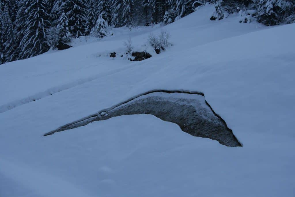 Se non vogliamo fare la fine di Pinocchio dovremmo stare attenti anche noi alle “bocche di balena”, così vengono chiamate le crepe da scivolamento del manto nevoso, queste possono dare origine ad un’improvvisa valanga in qualsiasi momento, è quindi consigliato di attraversare la zona senza perdere tempo.